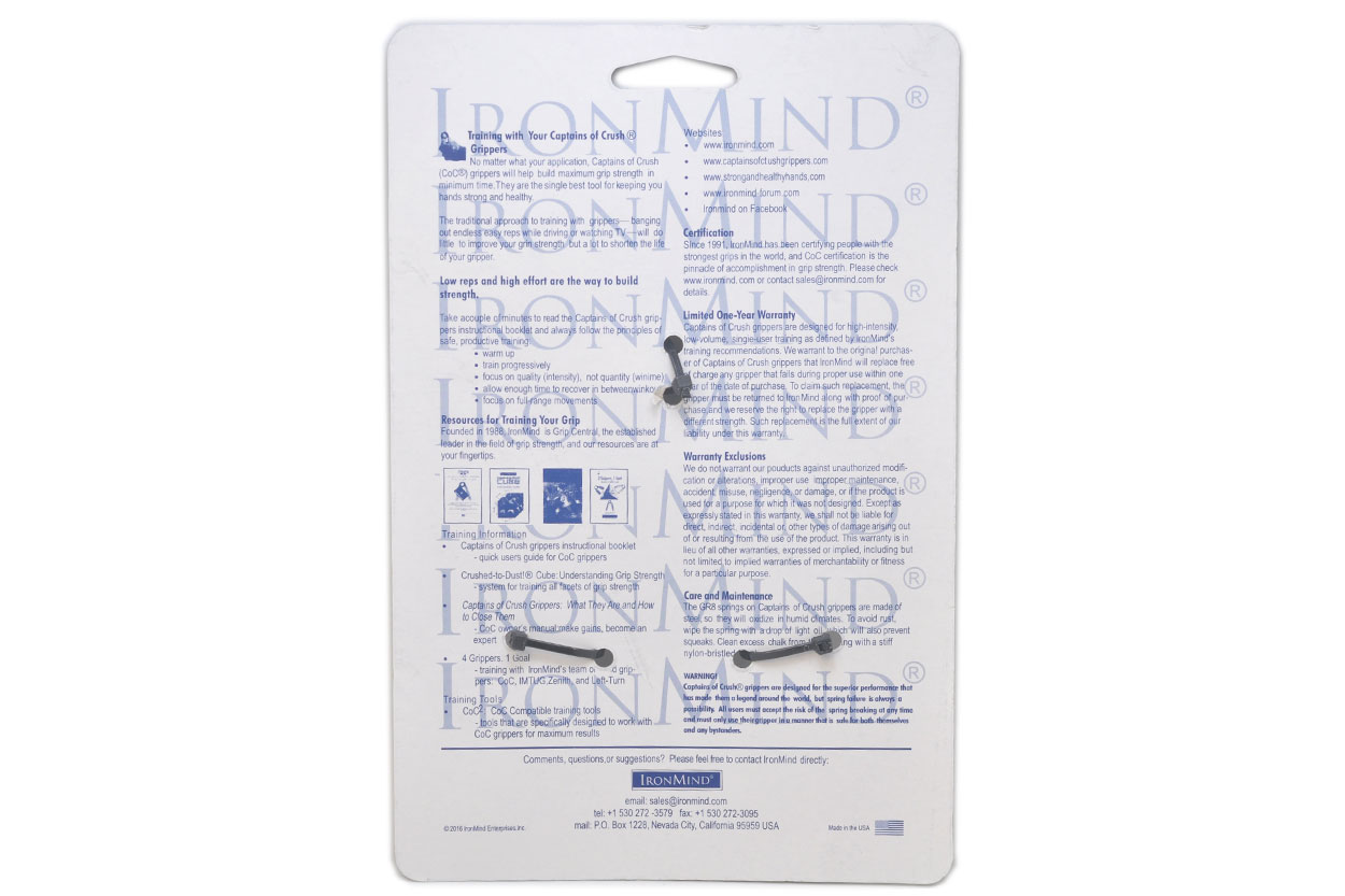 Captains of Crush (CoC?) grippers changed the gripper world, taking what had been a cheap, imported plaything and turning it into a beautifully designed and crafted training tool for serious strength athletes. Made in the USA and known worldwide, nothing else puts power in the palm of your hand like a Captains of Crush gripper.