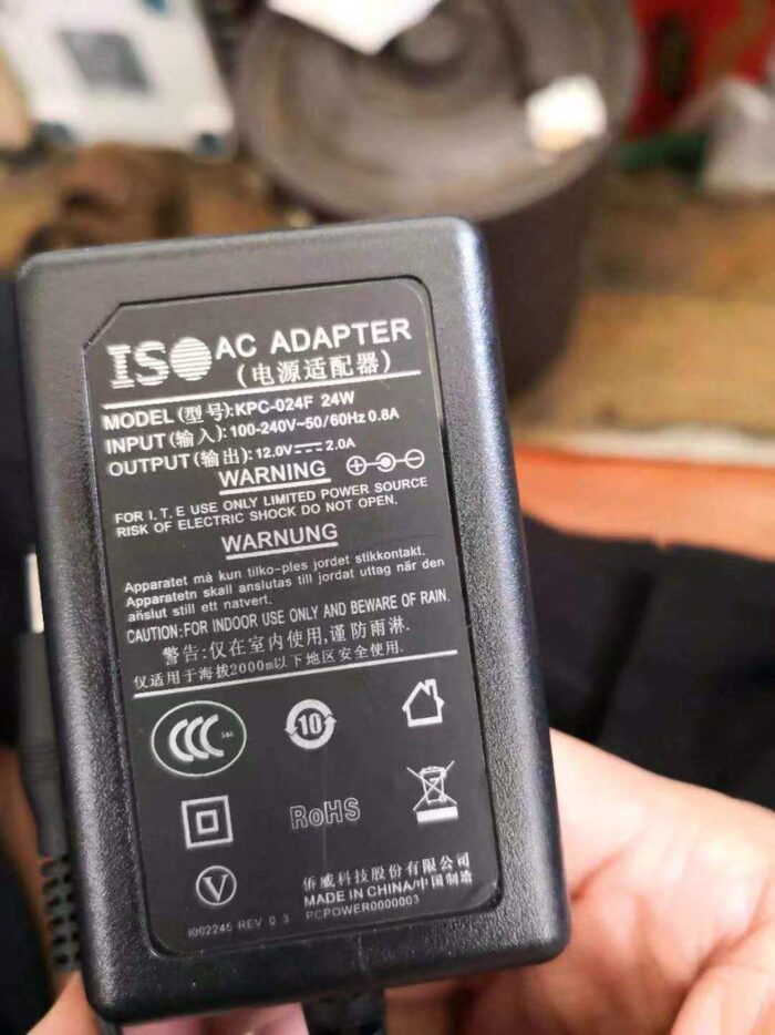 New Genuine ISO KPC-024F 24W 12V 2A AC DC adapter power Supply Battery Charger or Security Camera CCTV